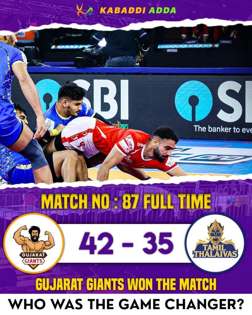 Himanshu Singh Powered Gujarat Giants to crucial win over Tamil Thalaivas, helps them to move at 7th Spot on Points Table