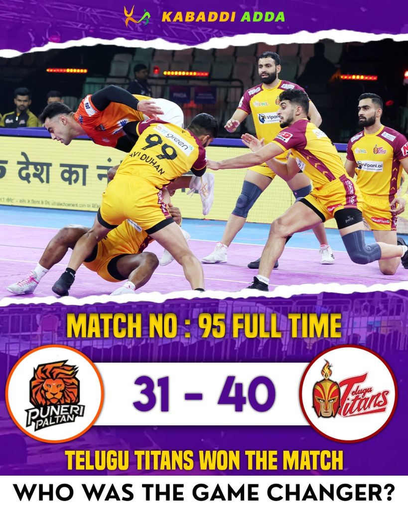 Puneri Paltan continued their fightback until the final moments, even managing a super tackle late in the game. However, the Titans maintained their lead and clinched the win, becoming the fourth team to qualify for the PKL Season 12 playoffs — joining Puneri Paltan, Dabang Delhi, and Bengaluru Bulls.