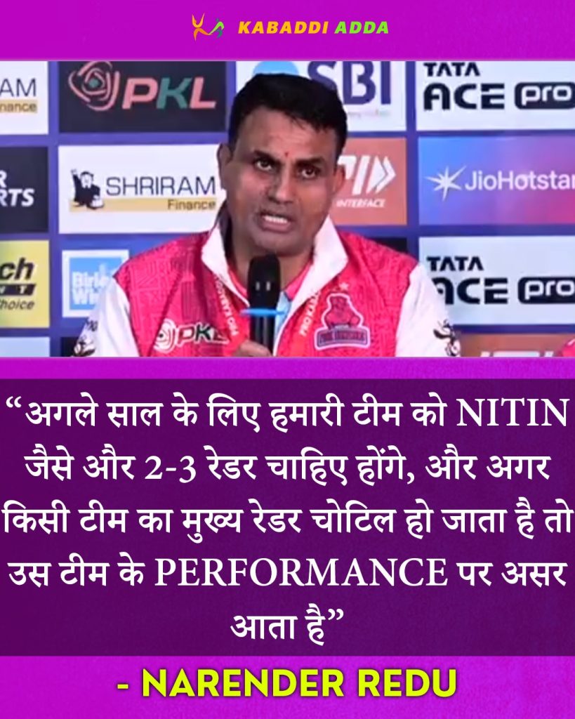 Narender Redu: “We need more raiders like Nitin going forward. He wasn’t fit, so he couldn’t play today, and that made a difference.”