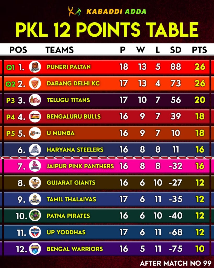 The Pro Kabaddi League Season 12 have reached towards its penultimate stage, where Top 8 teams in which 5 franchise including the likes of- Puneri, Delhi, Telugu, Bengaluru and Mumba have already made the cut and 3 more spots are left for contention.